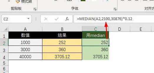而文中刚开始这名学生的提出问题,正好是让正中间的数据*0.12,这...不更是median函数的特长吗?