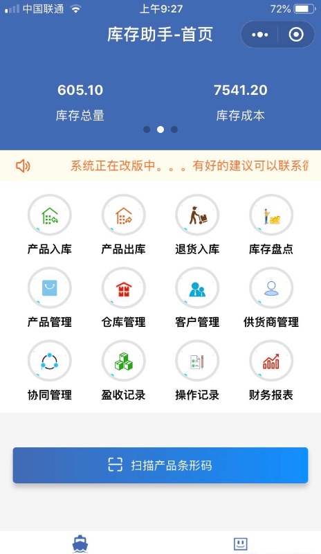 精简版仓库管理软件是多人协作手机版。打开微信发现小程序搜索库存表单并分享给同事,同事打开后,将生成一个库存表单账号。账号在我的界面,拷贝后发给你,然后你可以在首页协同管理上搜索他加为朋友,好朋友在我的界面协同申请中通过验证,双方就可以协同管理,同时也可以通过扫描的二维码方式添加朋友,扫描朋友个人中心的界面,右边小图标弹出的二维码。