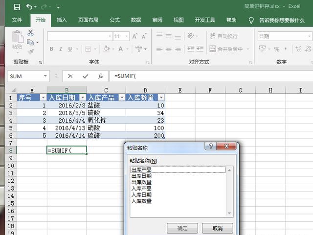 然后,在处理进销存问题时,我们只需要使用sumif和sumif函数列出上述函数参数。下图