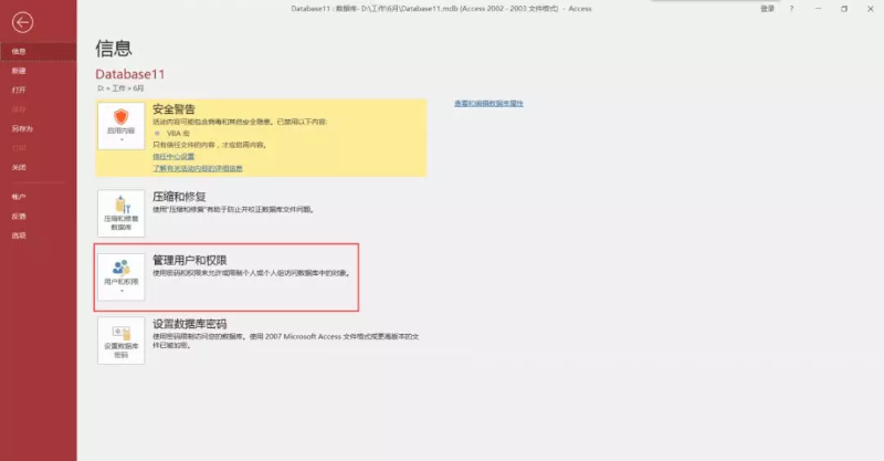 5)此外,在输入msaccess/user指令后,按照登录名称打开数据信息;