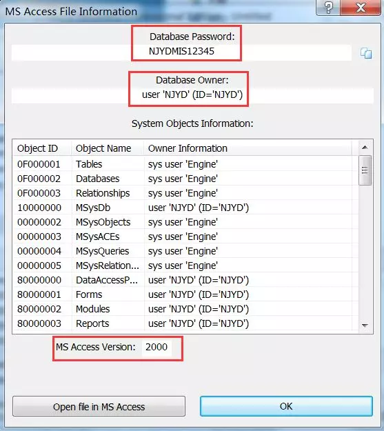 在明确计算机上访问数据信息的版本号为2007年以前后,应用软件使用先进的软件程序解密数据库查询的登录密码。在挪动手机软件中,数据库查询的登陆动态口令是njydmis12345,数据库查询的客户是njyd,数据库查询的版本信息是2000。