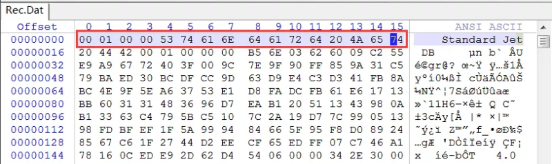 根据底层查询头查询文件头,可以发现数据信息是访问数据库查询,版本号是2007年以前的版本号。下图: