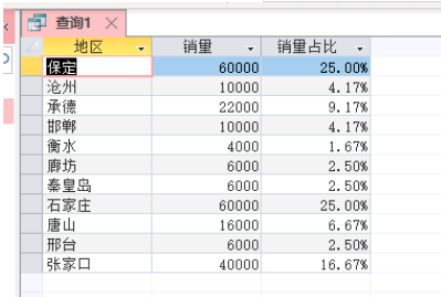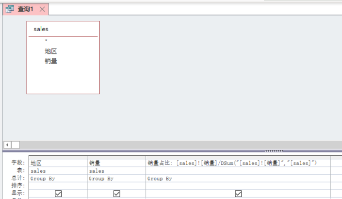 销售量占有率:[sales]![销售量]/DSum("[sales]![销售量]","[sales]")