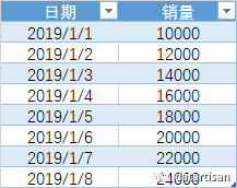 假定有以下市场销售记录卡[data],如今要测算每天销售量增长幅度占比