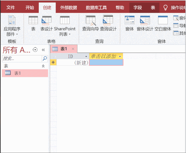 在创建表时,报表中三个按键,“表”是立即在建个简单的表格,“表设计方案”则能够 设计方案相对性繁杂的表,一般 全是应用“表设计方案”。下边由于仅仅详细介绍定义,立即用默认设置的“表”演试。