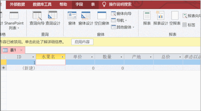 下边关键基本详细介绍好多个Access表格中的常见的基本要素,事后还会继续再进一步进行。下面的图是建立数据库进来的默认设置情况。是便捷新建表后的页面。(表格中不象excel中有行号和列号等)