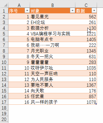 不管提升、删掉還是掩藏纪录行,编号都自动升级~是否有点儿小酷炫呢?