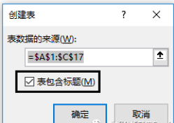 这时系统软件会弹出来【创建表】提示框,依据具体情况启用【表包括题目】
