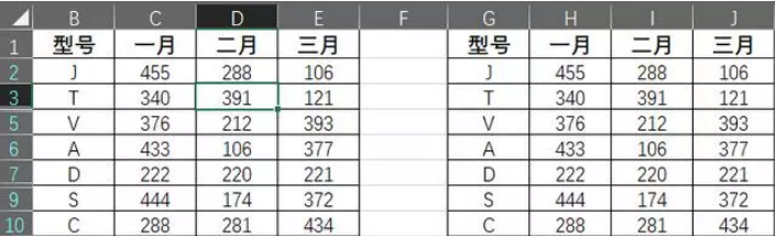 这一方式 不但可以用在一维数据信息,二维数据信息还可以,要是二张报表的方式彻底一样,仅仅同样部位的数据信息的比照。