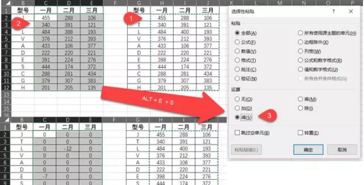 方式 :拷贝必须核查的数据信息,挑选另一组数据信息,键盘快捷键【ALT】+【E】+【S】(右键挑选【选择性粘贴】还可以),进到选择性粘贴页面,挑选【计算】内的【减】,确定就可以。计算后結果不以【0】的,即是差别项。