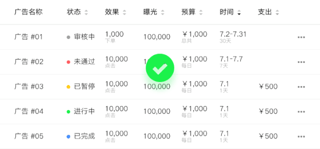 我一般应用最少周长24px的勾选框,以保证点一下的易用性。选定时,整列会用不一样的背景颜色来高亮度展现。