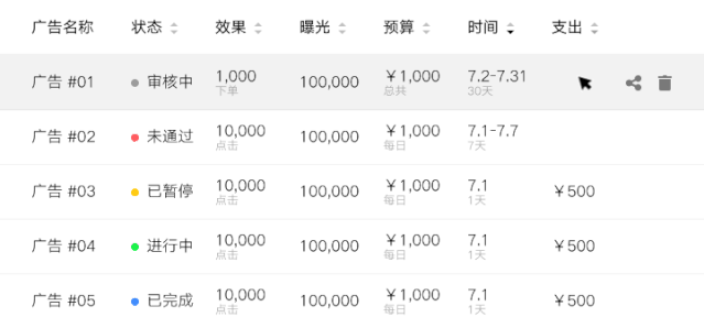 以便维持表格在绝大多数状况下的干净整洁性,能够默认设置掩藏实际操作按键,鼠标悬停时才出現。