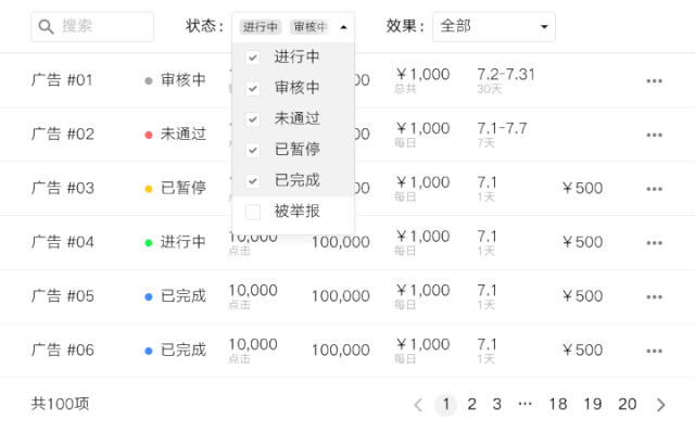 繁杂一点,能够依据将单列中反复出現的字段名变成好多个选择项(比如订单信息:审核/进行中/完成)。假如选择项过多,能够考虑到用勾选框完成选取。