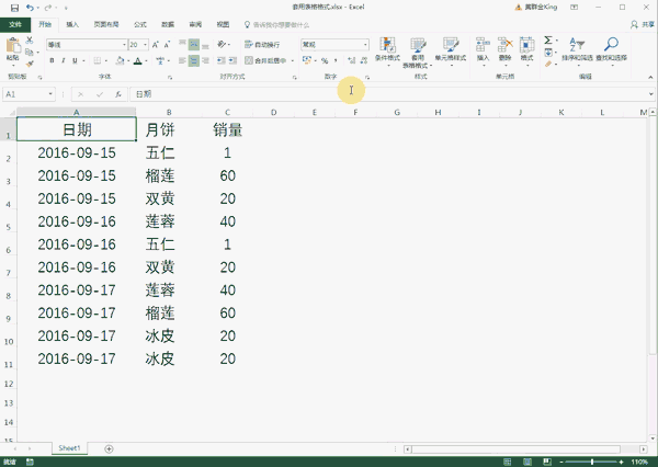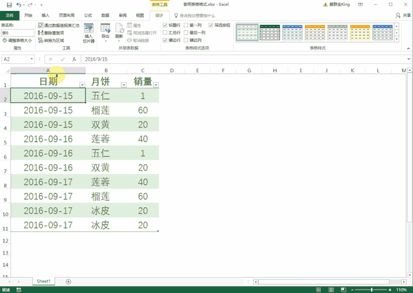 ?刚开始菜单栏下,挑选套入表格样式,立刻变漂亮;