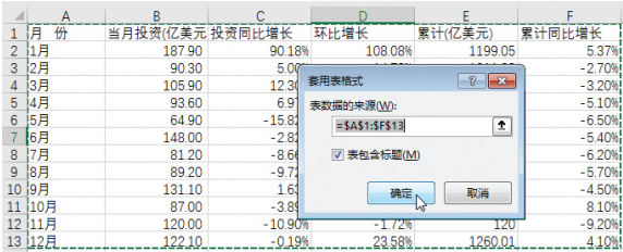 流程02挑选数据信息地区。在开启的【套入表格式】提示框中,挑选表格中的数据信息地区,如下图所显示。
